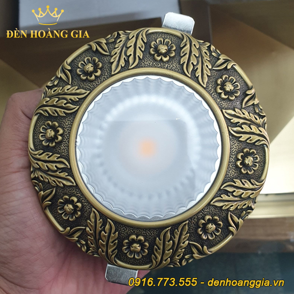Mặt đèn chính là điểm khác biệt ấn tượng mà bạn dễ dàng trông thất nhất khi tìm mua các mẫu đèn led âm trần cổ điển này. Nó được thiết kế tinh xảo đến từng chi tiết nhỏ. Chất liệu cấu tạo nên phần mặt đèn là đồng nguyên khối được đúc tỉ mỉ và chạm khắc những họa tiết hoa văn tinh tế. Có thể là hoa lá, cũng có thể là các linh vật. cùng denhoanggia.vn ngắm nhìn lại các mẫu đèn led âm trần cổ điển phổ biến nhất hiện nay nhé!