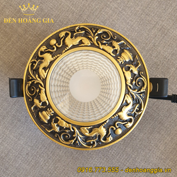 1.4. Mẫu đèn led âm trần cổ điểm bằng đồng chạm khắc Griffin
