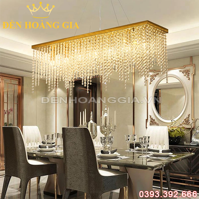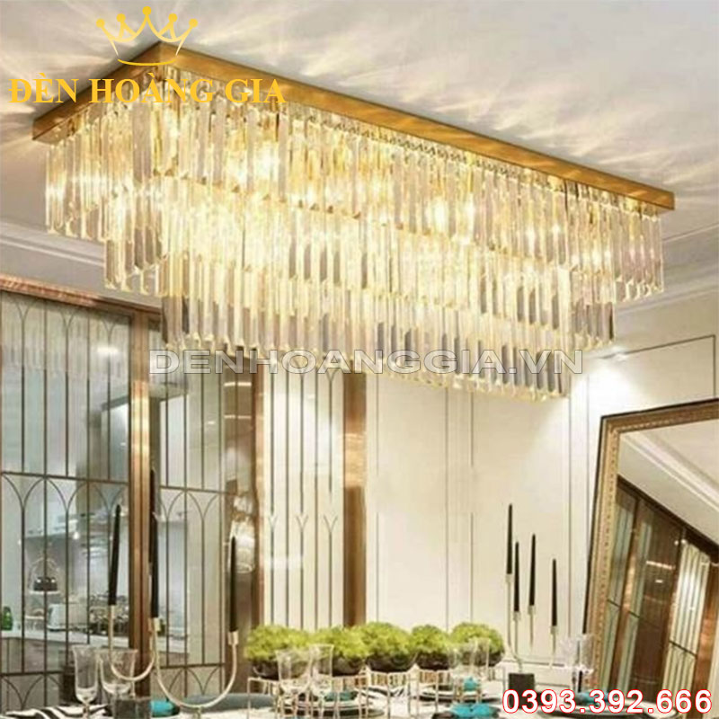 Đèn mâm pha lê hình chữ nhật sang trọng, hiện đại