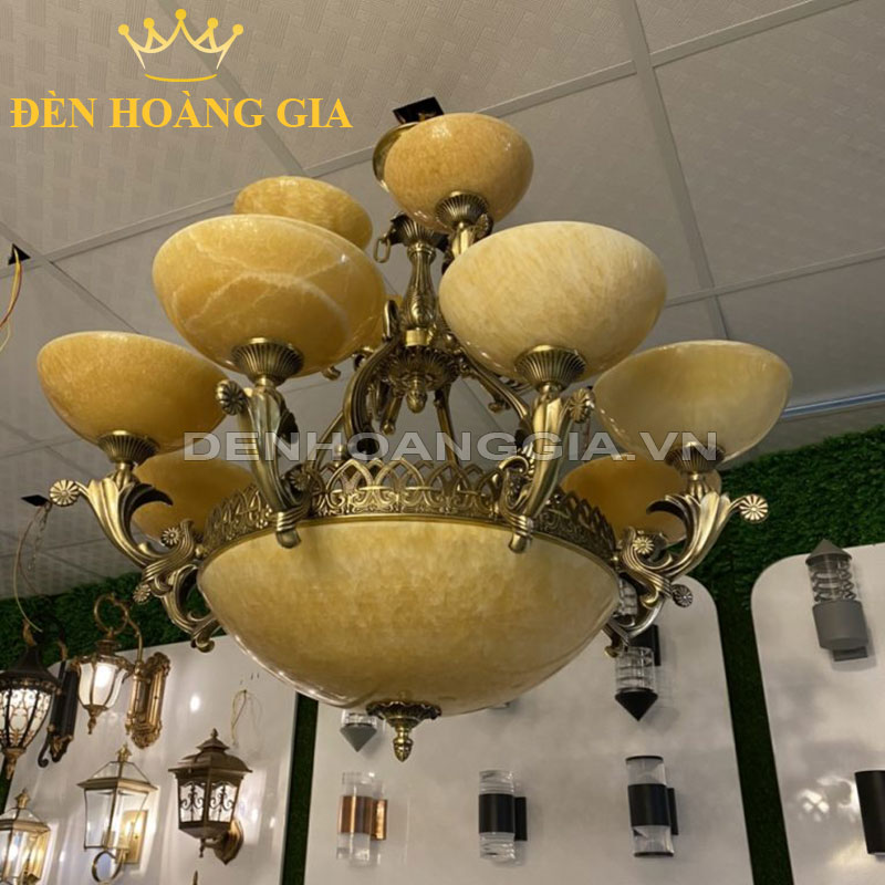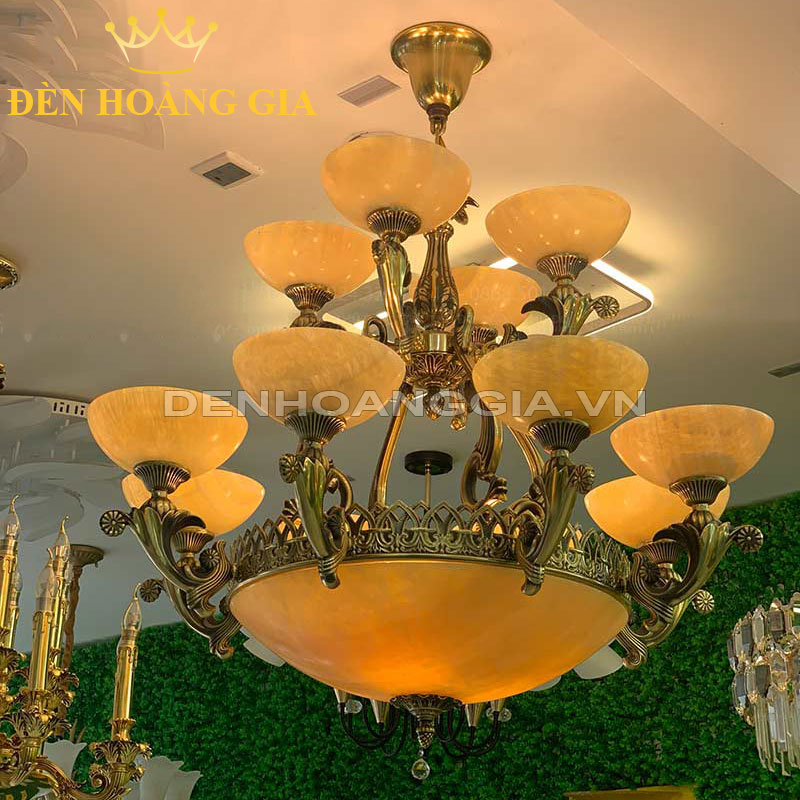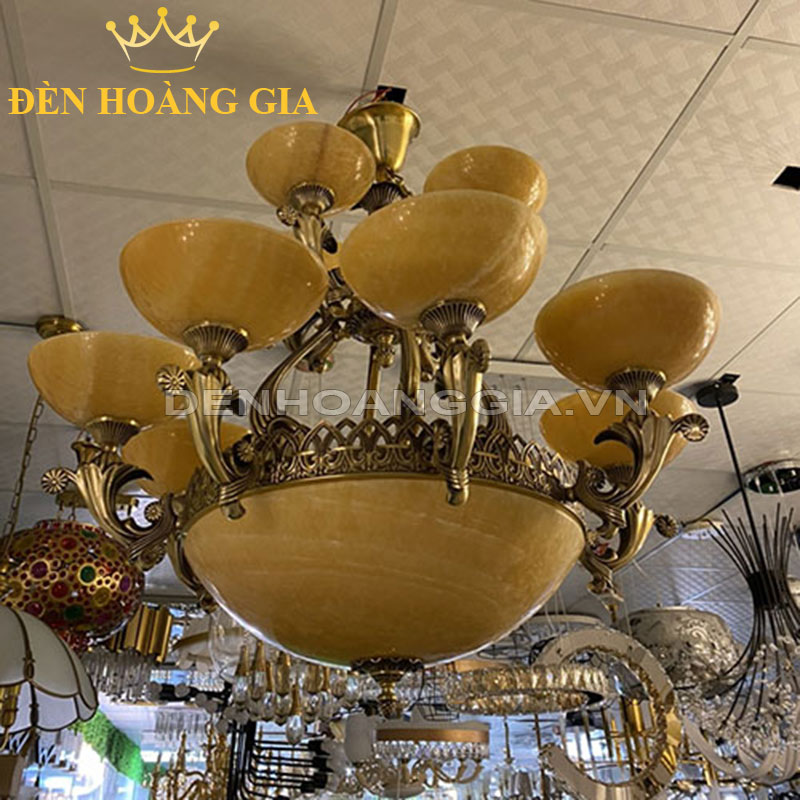 Đèn chùm đồng đá 12 tay hoa mai Rolux-DCD6353-12
