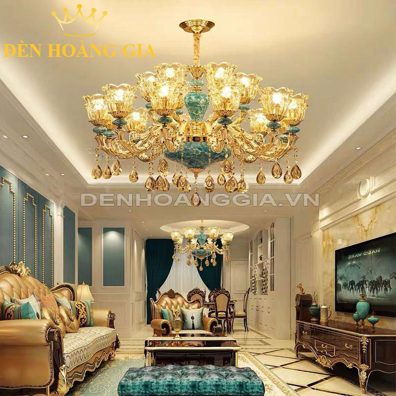 | Tên | Đèn chùm ngọc gốm xanh 15 tay Rolux-DCD2021-15 |