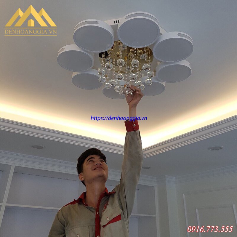 Đèn mâm led mica HGA-A4 được làm bằng nhựa mica có trọng lượng rất nhẹ. Vì vậy, đèn lắp đặt ở hầu hết các loại trần. Thiết kế đèn theo phong cách hiện đại với 8 cánh hình tròn xung quanh. Ở giữa trung tâm đèn được kết hợp với các quả cầu pha lê rất lung linh. Đèn có 3 chế độ màu ánh sáng trắng – vàng – trung tính được tích hợp trong một đèn và thay đổi bằng điều khiển từ xa rất linh hoạt