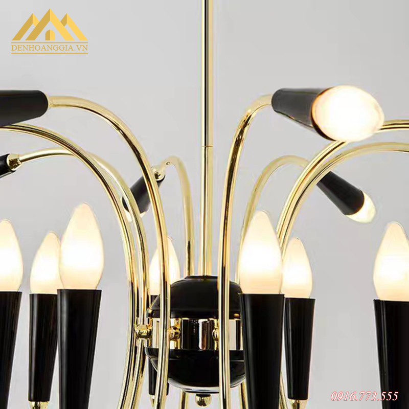 Đèn thả trần trang trí Rolux-THĐ001 hay còn được nhiều khách hàng biết tới với tên gọi đèn chùm hiện đại vì thiết kế đèn có nhiều tay đèn tỏa xung quanh. Nhà thiết kế đã kết hợp hai chất liệu được ưa chuộng nhất của các mẫu đèn trang trí là hợp kim sơn tĩnh điện và thủy tinh cao cấp. Màu vàng đồng sáng bóng của tay đèn cùng với các bóng đèn led chiếu sáng ra tạo nên một vẻ đẹp độc đáo và tinh tế. Do vậy mà khách hàng thường lựa chọn mẫu đèn thả đẹp trang trí cho các không gian như phòng khách, phòng làm việc, phòng đọc sách,… Đèn được thiết kế có 12 tay dài theo kiểu gần giống chữ “C” trong đó có 12 bóng đèn hướng lên trên và 12 bóng đèn tỏa xung quanh tạo nên được nguồn ánh sáng rộng cho không gian.